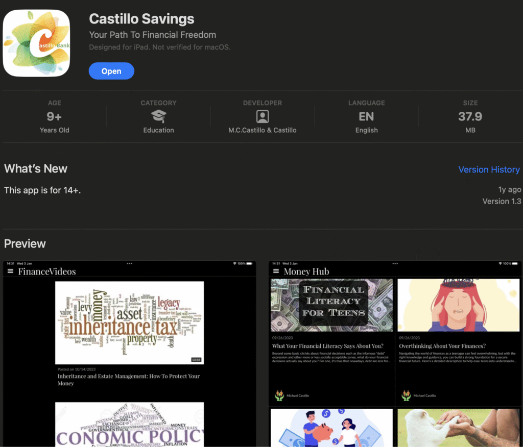 M.C.Castillo & Company is a USA-based financial literacy app and insurance company dedicated to helping individuals and businesses build and protect generational wealth. Based in Los Angeles, California, our first product Castillo Savings app we combine financial education with practical solutions, enabling users to learn, earn, and save while accessing quality insurance and investment products.